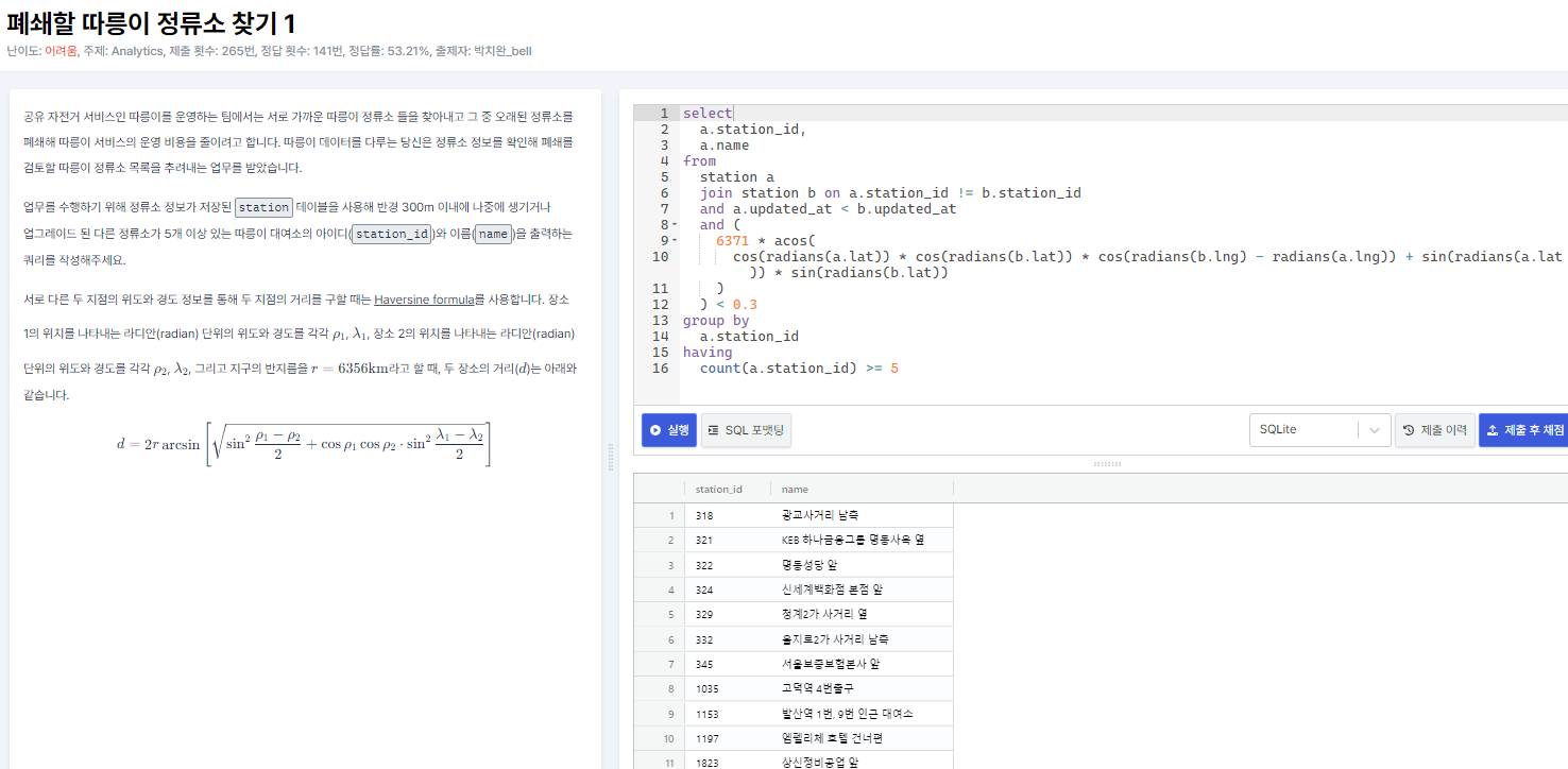 조건5) 아이디(station_id)와 이름(name)을 출력하는 쿼리를 작성